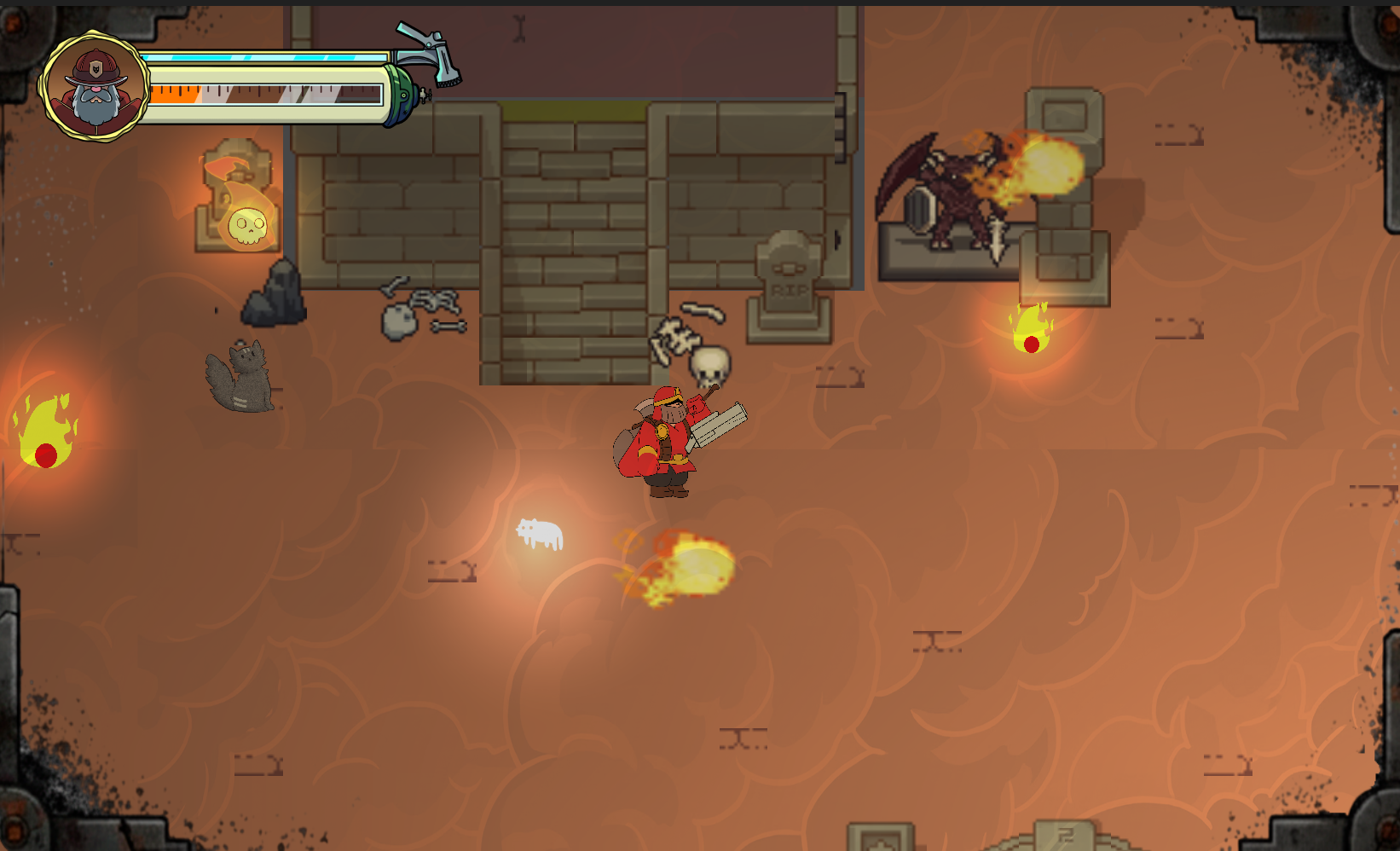 - Combate Táctico: Gestión estratégica de recursos. Alterna entre el hacha y la manguera de agua con un cooldown de 5 segundos que castiga el error.
